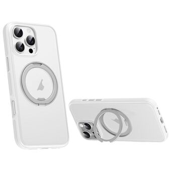 For iPhone 16 Pro Solid Color 360 Degree Rotating Holder MagSafe Magnetic Phone Case(White)