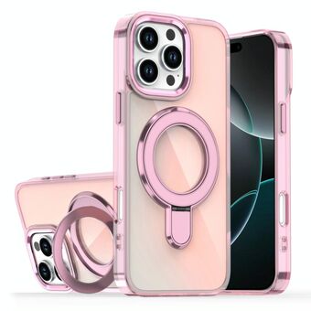 For iPhone 16 Pro Plating Gradient Discolor MagSafe Holder Phone Case(Clear Pink)
