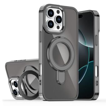 For iPhone 16 Pro Plating Gradient Discolor MagSafe Holder Phone Case(Clear Black)
