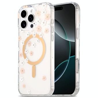 For iPhone 16 Pro Dual-side Laminating IMD MagSafe Phone Case(Pink and White Daisy)