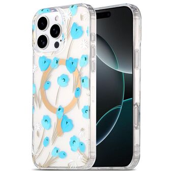 For iPhone 16 Pro Dual-side Laminating IMD MagSafe Phone Case(Blue Flowers)