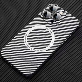 For iPhone 16 Pro MagSafe Magnetic PC Carbon Fiber Phone Case with Lens Film(Silver White)