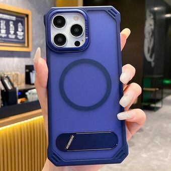 For iPhone 16 Pro Skin Feel Frameless MagSafe PC Phone Case with Fold Holder(Blue)