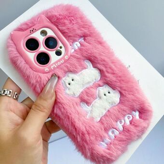 For iPhone 16 Pro Plush Cute Cat Full Coverage Silicone Phone Case(Pink)