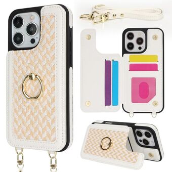 For iPhone 16 Pro Double Bckle Card Slot Full Coverage Phone Case with Cross-body Strap(White)