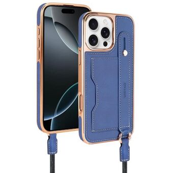 For iPhone 16 Pro VIETAO Card Slot Wristband Phone Case with Lanyard(Blue) (VIETAO)
