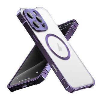 For iPhone 16 Pro Irregular Alloy Frame Fosted Translucent MagSafe Phone Case(Purple)