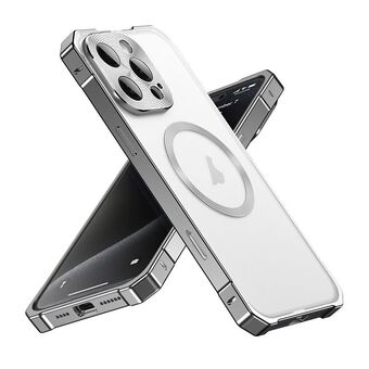 For iPhone 16 Pro Irregular Alloy Frame Fosted Translucent MagSafe Phone Case(Titanium)