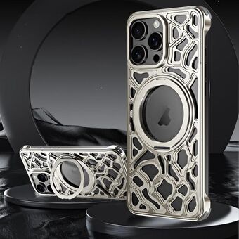 For iPhone 16 Pro Max Four Corner Shockproof Lens Bracket Hollow Metal Phone Case(Titanium)