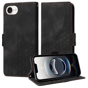 For iPhone 16e Embossed Rhombus Starry Leather Phone Case(Black)
