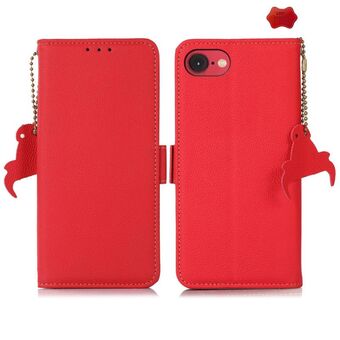 For iPhone 16e Side-Magnetic TJ Genuine Leather RFID Phone Case(Red)