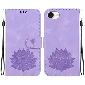 For iPhone 16e Lotus Embossed Leather Phone Case(Purple)