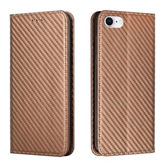 For iPhone 16e Carbon Fiber Texture Magnetic Flip Leather Phone Case(Brown)