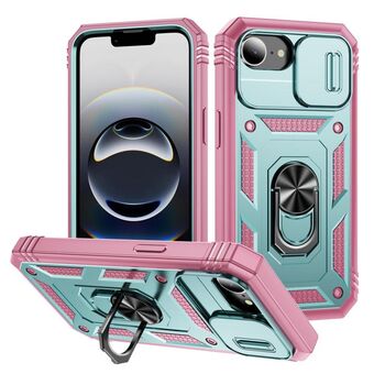 For iPhone 16e Sliding Camshield TPU + PC Phone Case with Holder(Pink+Green)