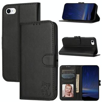 Θήκη τηλεφώνου από δέρμα με σχέδιο χαρούμενης γάτας σε ανάγλυφο για iPhone 16e (Μπλε)