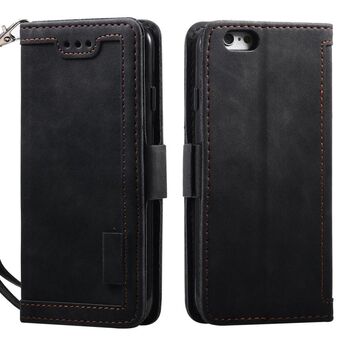 Για το iPhone 16e Ρετρό Splicing οριζόντια Flip δέρμα τηλέφωνο υπόθεση (Μαύρο)