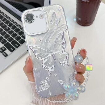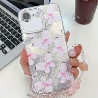 Θήκη τηλεφώνου TPU με επιμετάλλωση, υφή πεταλούδας και βραχιόλι χειρός για iPhone 16e με προστατευτική μεμβράνη φακού με γκλίτερ (Πεταλούδες Μαργαρίτας HU2)