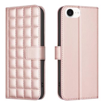For iPhone 16e Square Texture Leather Phone Case(Rose Gold)