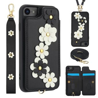 For iPhone 16e Crossbody Flower Pattern Leather Phone Case(Black)