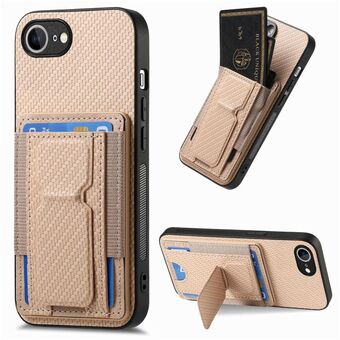 For iPhone 16e Carbon Fiber Fold Stand Elastic Card Bag Phone Case(Khaki)
