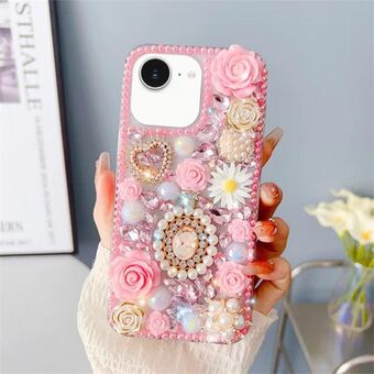 For iPhone 16e Diamond Inlaid Rose PC Phone Case(Pink)
