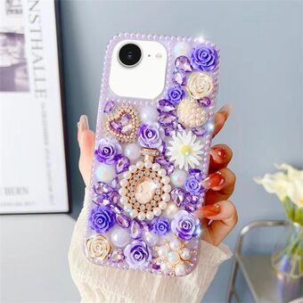 For iPhone 16e Diamond Inlaid Rose PC Phone Case(Purple)