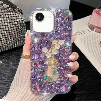 For iPhone 16e Plum Blossom Handmade Diamond Inlay PC Phone Case(Purple)