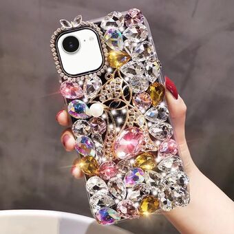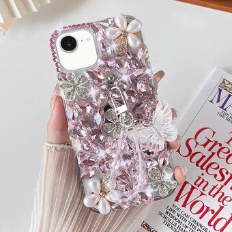 For iPhone 16e Handmade Butterfly Diamond Inlay PC Phone Case(Pink)