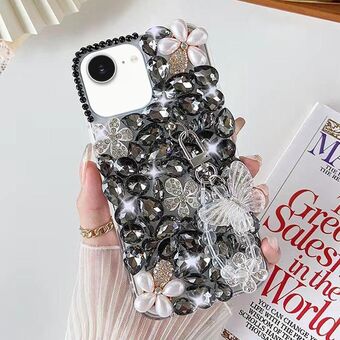 For iPhone 16e Handmade Butterfly Diamond Inlay PC Phone Case(Black)