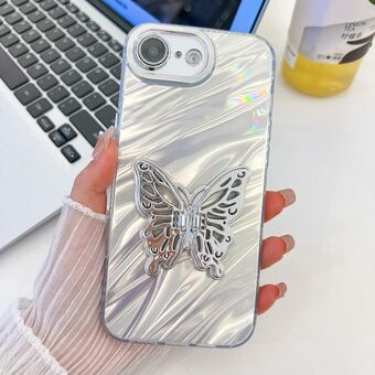 For iPhone 16e Plating Glitter Texture Butterfly Holder TPU Phone Case with Lens Film(White Water Ripples)