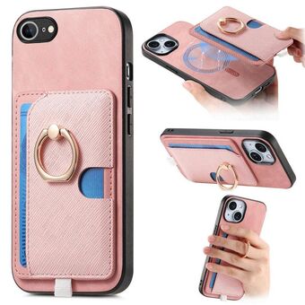 For iPhone 16e Retro Cross Leather Ring Side Insert Card Bag MagSafe Phone Case(Pink)