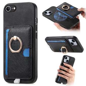 For iPhone 16e Retro Cross Leather Ring Side Insert Card Bag MagSafe Phone Case(Black)
