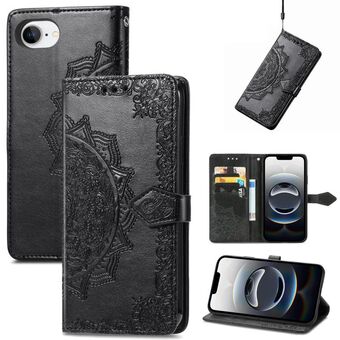For iPhone 16e Mandala Flower Embossed Leather Phone Case(Black)