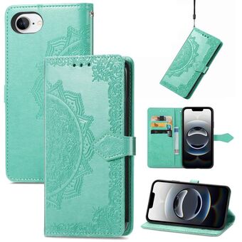 For iPhone 16e Mandala Flower Embossed Leather Phone Case(Green)