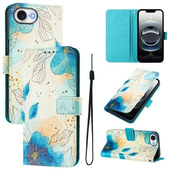 For iPhone 16e Art Colored Drawing Pattern Leather Phone Case(Flowers and plants)