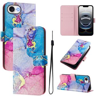 For iPhone 16e Art Colored Drawing Pattern Leather Phone Case(Ocean marble)