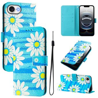 For iPhone 16e Art Colored Drawing Pattern Leather Phone Case(Blue daisy)