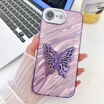 For iPhone 16e Plating Glitter Texture Butterfly Holder TPU Phone Case with Lens Film(Purple Water Ripples)
