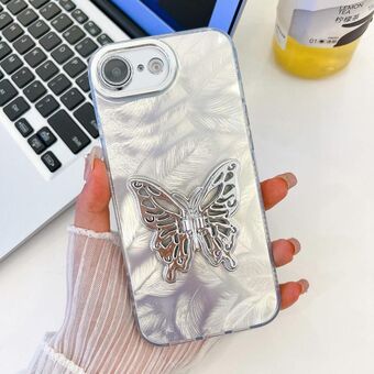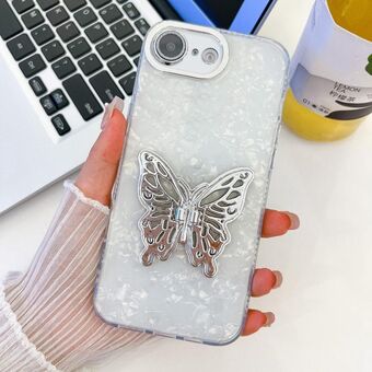 For iPhone 16e Plating Glitter Texture Butterfly Holder TPU Phone Case with Lens Film(White Shell Grain)
