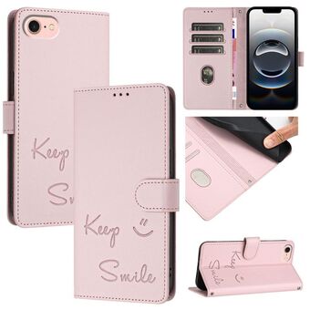 For iPhone 16e Smile Embossing RFID Leather Phone Case(Pink)
