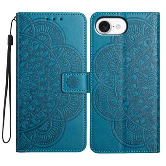 For iPhone 16e Skin Feel Totem Embossed Leather Phone Case(Blue)