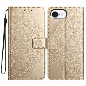 For iPhone 16e Flower Embossed Leather Phone Case(Gold)