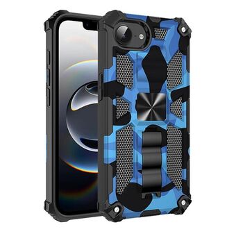 For iPhone 16e Camouflage Armor Kickstand TPU Hybrid PC Magnetic Phone Case(Blue)