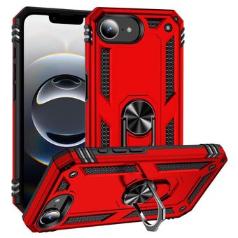 For iPhone 16e Armor Shockproof TPU Hybrid PC Magnetic Phone Case with Holder(Red)