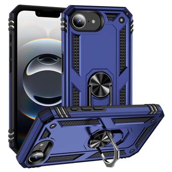 For iPhone 16e Armor Shockproof TPU Hybrid PC Magnetic Phone Case with Holder(Blue)