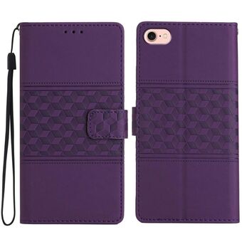 For iPhone 16e TTUDRCH Embossed Line Splicing Leather Phone Case(Purple)