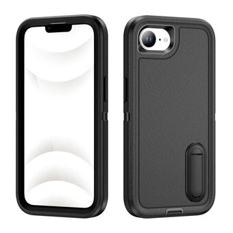 For iPhone 16e Rugged PC + Silicone Phone Case with Holder(Black)