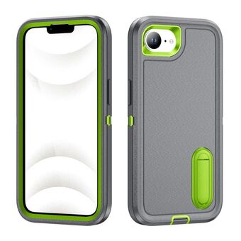 For iPhone 16e Rugged PC + Silicone Phone Case with Holder(Grey+Fresh Green)