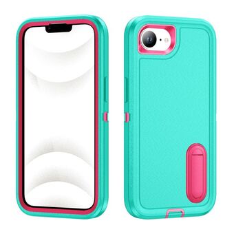 For iPhone 16e Rugged PC + Silicone Phone Case with Holder(Light Green+Rose Red)