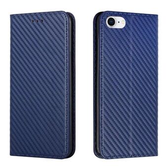 For iPhone 16e Carbon Fiber Texture Magnetic Flip Leather Phone Case(Blue)